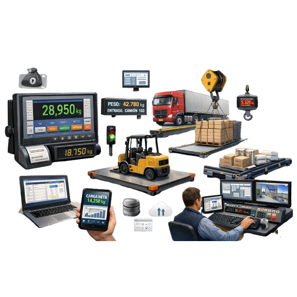 - Sistemas de pesaje estático (Balanzas y básculas camioneras para control de carga vehicular.)